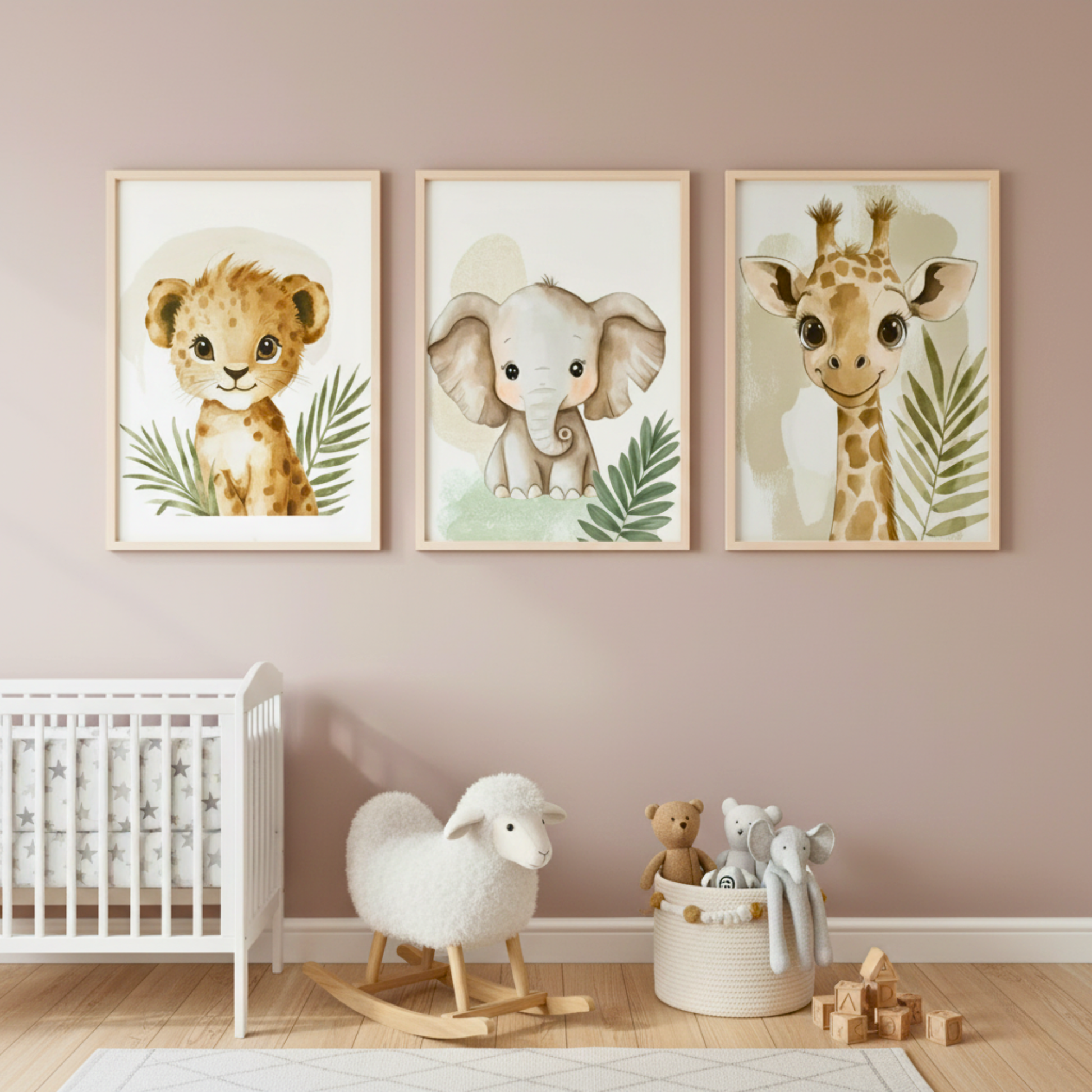 🦒 Adorable Baby Safari Friends: Imagine your little one discovering a friendly baby giraffe, elephant, and leopard every time they enter the room. This 3-piece canvas set brings the magic of the jungle to life, creating a cheerful and welcoming space for playtime or quiet moments.