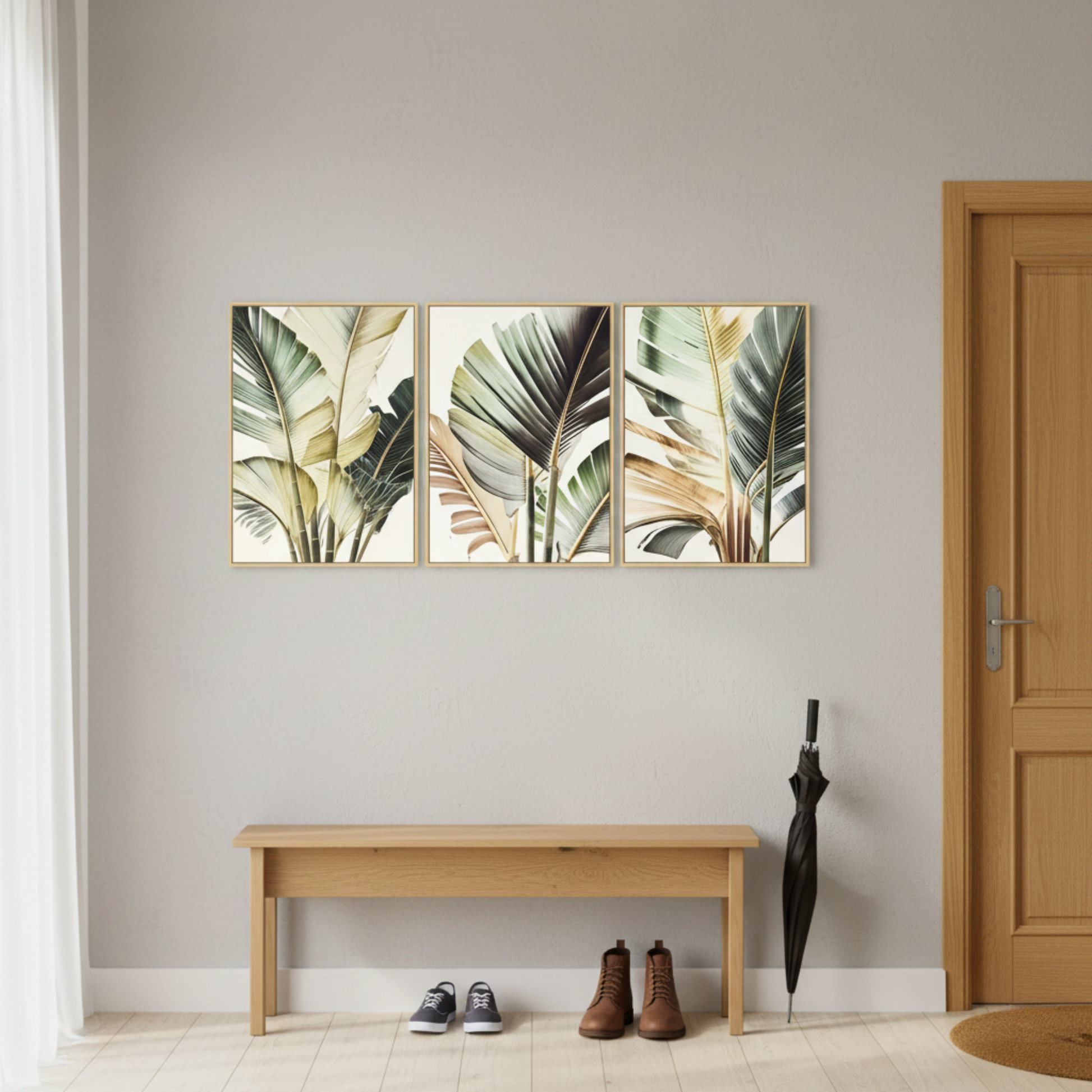 Tropical Palm Leaf Canvas Wall Art – Modern 3-Piece Botanical Print Set