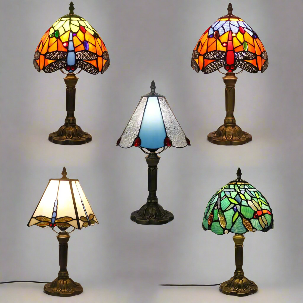 Retro Dragonfly Tiffany Style Lamp β Colourful Stained Glass & Iron Base Accent Light